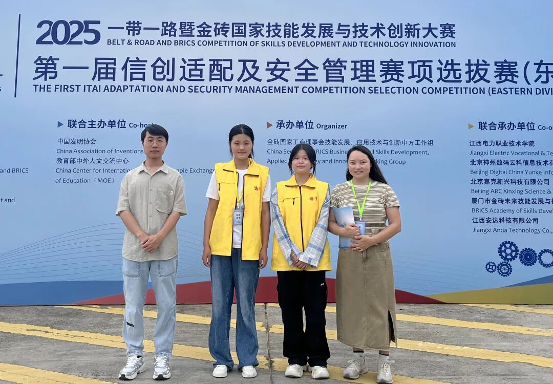 当信创赛道的号角在东部赛区吹响,当青春的智慧与国家战略需求同频共振,临川旅游商贸中等专业学校再添荣光——近日,我校2024级计算机专业学生周缌琪、王思莹两人在“2025一带一路暨金砖国家技能发展与技术创新大赛首届信创适配及安全管理赛项选拔赛(中职组)”中,凭借过硬的专业素养与灵动的创新思维脱颖而出,成功